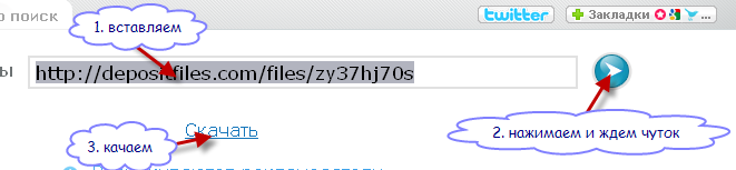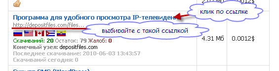 Описанный выше способ может не работать если вы будете открывать ссылки с переходом на сайт рекламодателя. Некоторые из них могут содержать адрес через сторонний файлообменник. Кто то просто не дает прямую ссылку на файл, а на страницу закачки файла. Если перешли на страницу сайта Depositfiles.com то просто скопируйте ссылку из строки вашего браузера и дальше по схеме.
