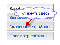 Далее смотрите справа меню аккаунта раздел "Заработок", а в нем кнопку "Скачивание файлов". Тыкайте по ней.